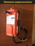 Конструкция приемника включает в себя антенну, которая улучшает качество приема и увеличивает радиус действия. Электронные компоненты приемника интерпретируют сигнал и транслируют соответствующий электрический импульс на релейные управляющие элементы. Они переключаются в нужное положение, выдавая указание например, на включение аппарата или перемещение самого крана.